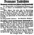 "Ein Schreiben des Reichskanzlers an seine Geburtsstadt Braunau. Auf das Glückwunschschreiben des Herrn Bürgermeisters namens der Stadtgemeinde Braunau an den deutschen Reichskanzler Adolf Hitler langte ein Dankschreiben, vom Reichskanzler gezeichnet, ein, worin dieser seiner Freude Ausdruck gibt, von seiner Geburtsstadt diese Glückwünsche übermittelt zu erhalten."
