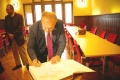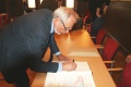 The official parts of today also went very well. David and Judy at times fought their tears, but at the end everyone was impressed and happy, a memorable day. It started at the city hall with a welcoming message by the mayor Hannes Waidbacher to the press, dignitaries of the local government and us from the “Stadtverein”, then Florian held his presentation on his research and its outcome. The following questions of the press showed a lot of interest but they were considerate and not too inquisitive. Most went in English so I did not have to say or translate too much. David gave very good answers and statements on his pilgrimage, as he calls it, signatures were given in the book of honour. The page was designed by Ingo, the president of our society, who could not attend due to private obligations. The book was signed by the Barrys, the mayor, the district governor and - on an extra page - by all guests present .