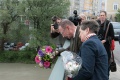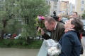 Then we went out to the River Inn, to the middle of the bridge to commemorate David’s father’s death. David did not mind the press and TV team to follow. A short ceremony, prayers etc. was held by our local priest Jan Lange, he found some very nice words for David and Judy, all in English, a minute of silence, then David dropped a bouquet of flowers down into the again very fast flowing river, he obviously and understandably was very moved. The bouquet floated very well with flowers up, so we could watch it nearly all the way down to the railway bridge. The fast flowing current let us easily imagine how these soldiers had to fight in 1945 to keep this feeble pontoon bridge intact, not designed for an alpine river.