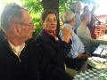 The evening at Bogner’s (our local pub) was wet of beer and tears. Florian, Elisabeth, Gitti and Oliver, Erich and his sons and Heidi and I attended. Bogner as there presentative of the local veteran’s association gave Judy and David a small present that moved them very much. Brass music played like crazy around our table in the garden, so we escaped into the inn for dinner where we were encountered with a group of people celebrating with very intensive harmonicaplay and hefty singing. So after the meal we finished the evening off in another more quiet room. David and Judy simply were overwhelmed with all the info, people and sights. It will need some time for them to digest. So tomorrow we will have the official programme. Let’s see ..